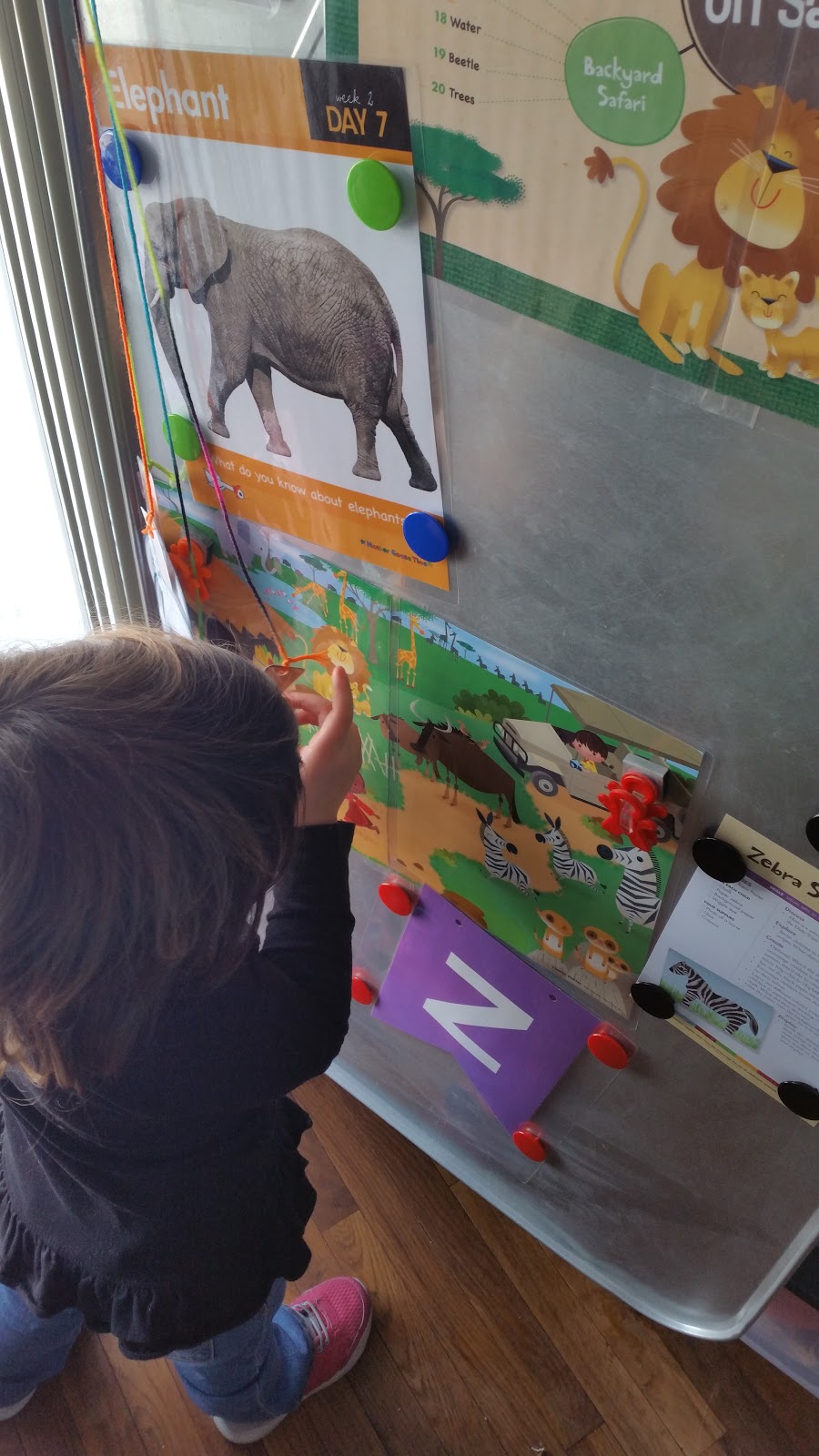 Names of animals as vocabulary has made it fun watching the kids learn to recognize the words. "Wild Animal Match" gave them practice finding the correct animal, learning letters, and words. This little girl liked every single animal on the cards.
